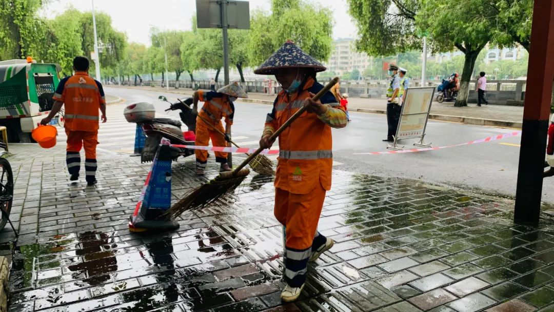 我们会提前做好保洁工作,今天早上是高考的第一天,环卫工人在七点半的时候就已经做好了第一轮保洁工作。八点以后,我们派了专人在这边巡查,维护考场外的环境卫生。